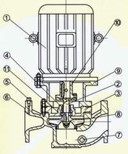 1、电动机:采用通用Y系列电动机。 ![]() 2、泵 轴:采用泵联与轴一体。 3、泵 盖:巧妙设计,便于机封的安装、维护、外型美观。 4、机 封:采用不锈钢、炭化钨、氟橡胶等材料制成。平衡式耐高温、高压机械密 封,运行寿命长,不积水垢,保证工作环境的整洁。 5、取压孔:安装压力表及真空压力表监控泵的正 常高效运行。 6、泵 体:压出室和吸入室采用优秀水力模型设计而成,即美观又高效,设有安装 底脚,便于安装和运行稳固。 7、放水塞:确保泵的正常维护。 8、叶 轮:采用优秀的水力模型设计而成,具有效率高,可靠性好等特点。 9、支 架:联接泵体与电机稳定性好。 10、电 联:与泵联通过螺栓联接。 11、水轴承:用于辅助支撑。 |